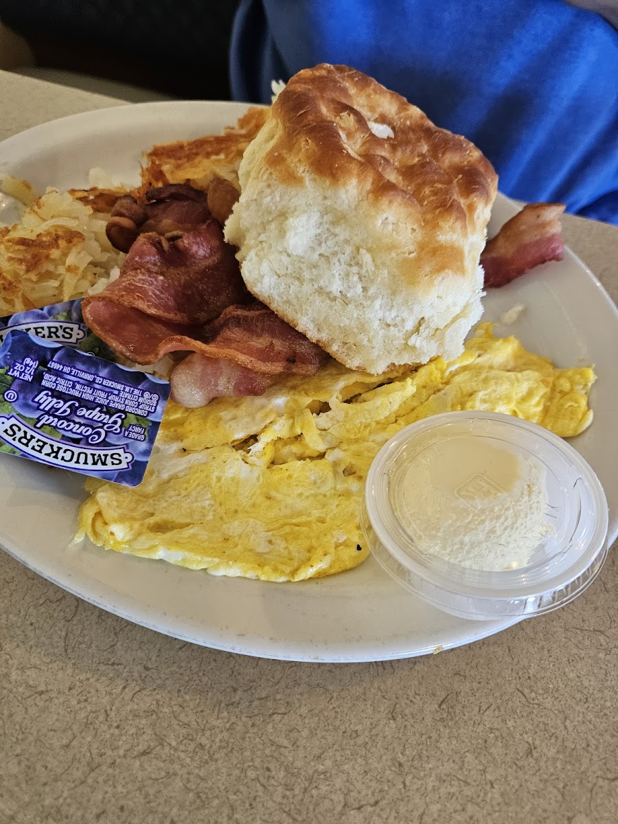Could do with less flies but it seems every restaurant in Missouri has them to some degree. We had breakfast, over medium eggs, corned beef hash, hash browns and a biscuit. Everything was wonderful except for the corned beef hash. It was blah. My husband's steak & eggs were DELICIOUS! Tha will be my next do!!! Our server was Megan (?) She was awesome! She made our visit a little extra.